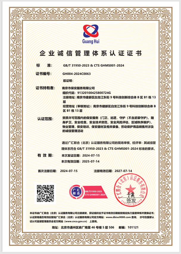 Established in April 1987, Nanjing Security Service Co., Ltd. is a large state-owned security enterprise with a long history of security operation and rich security experience. Now it is a managing director of both? China Security Association and Jiangsu?Security Association, vice president of? Nanjing Security Association, one of the top class security service companies in Jiangsu Province.