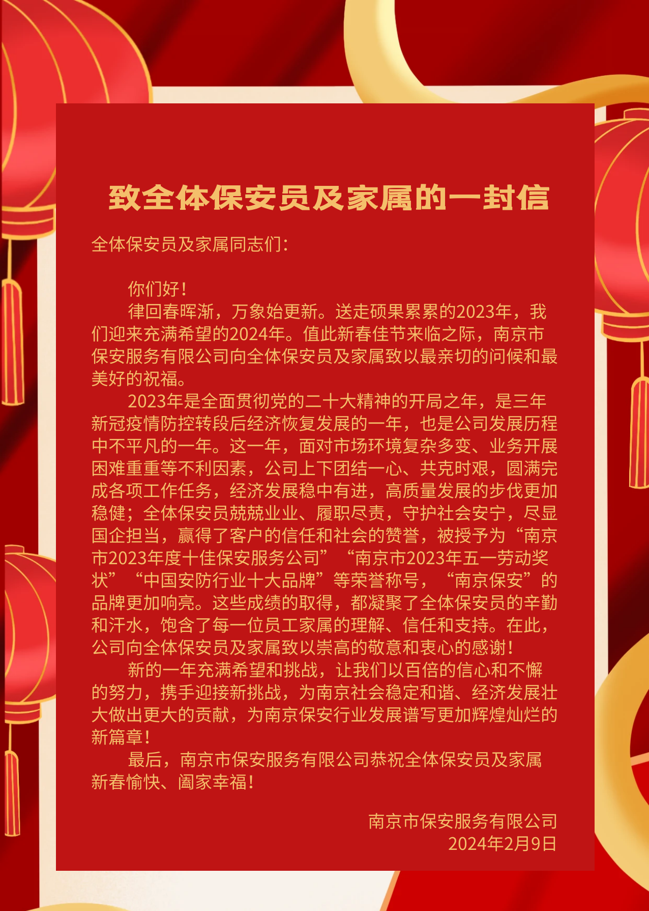 上一篇:春節(jié)伊始,南京市保安服務(wù)有限公司領(lǐng)導(dǎo)深入一線慰問(wèn)堅(jiān)守崗位的保安員