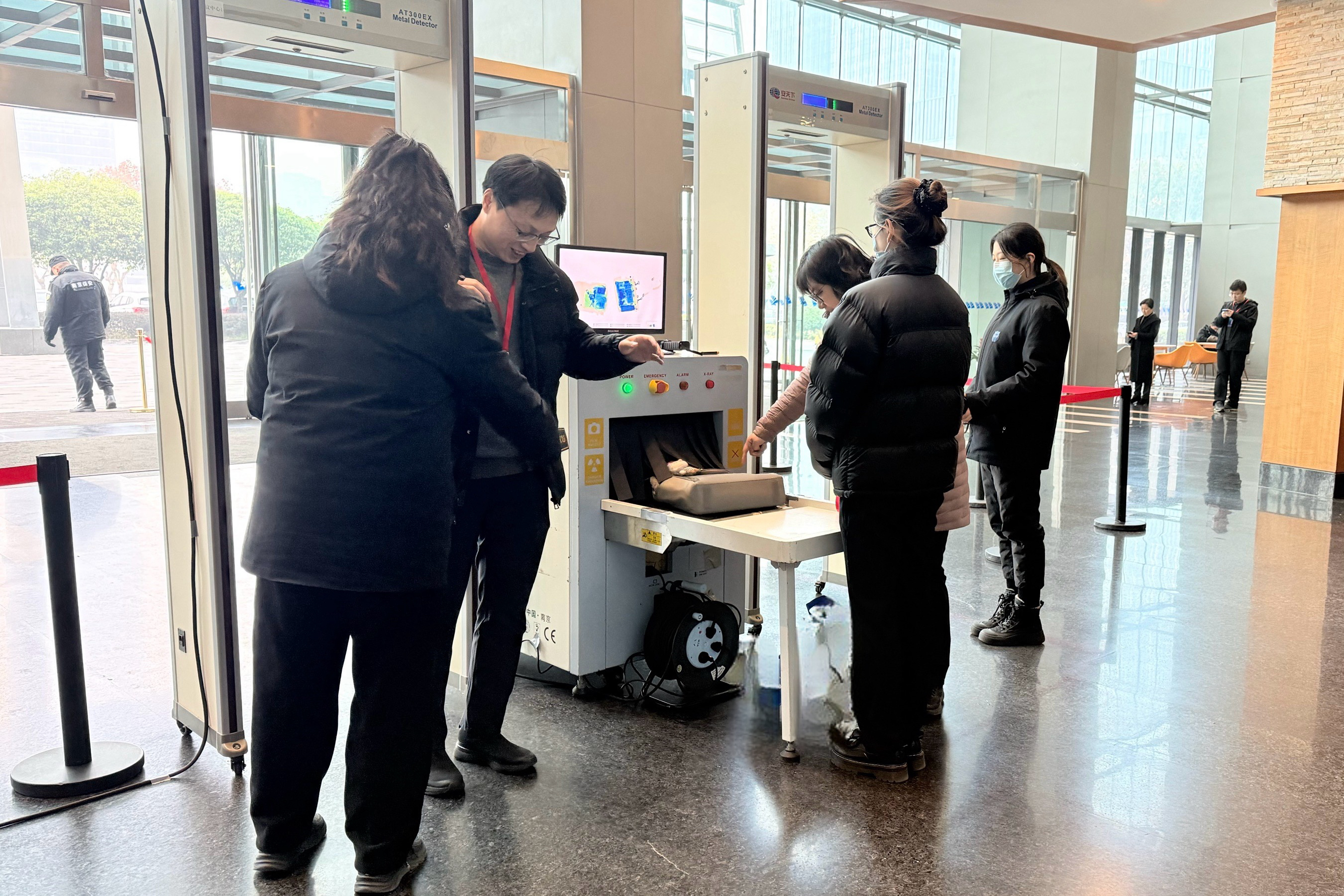 南京市保立足政治使命要求,精心抽調(diào)政治素質(zhì)過(guò)硬、業(yè)務(wù)能力精湛、作風(fēng)紀(jì)律嚴(yán)明的精干力量,組建專業(yè)化精英安保團(tuán)隊(duì)。全體安保人員牢記職責(zé)使命,始終保持飽滿昂揚(yáng)的精神狀態(tài)與令行禁止的紀(jì)律作風(fēng),以高度的責(zé)任心踐行安保擔(dān)當(dāng)。安檢環(huán)節(jié)嚴(yán)格執(zhí)行安保規(guī)范,堅(jiān)持逢人必檢、逢物必查、從嚴(yán)從細(xì),堅(jiān)決將各類安全隱患阻隔在會(huì)場(chǎng)之外,筑牢安全第一道防線;服務(wù)環(huán)節(jié)秉持嚴(yán)謹(jǐn)細(xì)致、主動(dòng)熱情的態(tài)度,耐心解答參會(huì)人員咨詢,精準(zhǔn)提供路線引導(dǎo),高效維護(hù)現(xiàn)場(chǎng)秩序,以規(guī)范專業(yè)的服務(wù)舉措,充分展現(xiàn)南京市保的過(guò)硬專業(yè)素養(yǎng)與良好職業(yè)風(fēng)采。